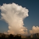 A still maturing cumulonimbus cloud that was developing due to surface daytime heating under light winds and a large upper-level trough. Cirrostratus nebulosus above this cloud formed due to moist air that was present at high altitudes.