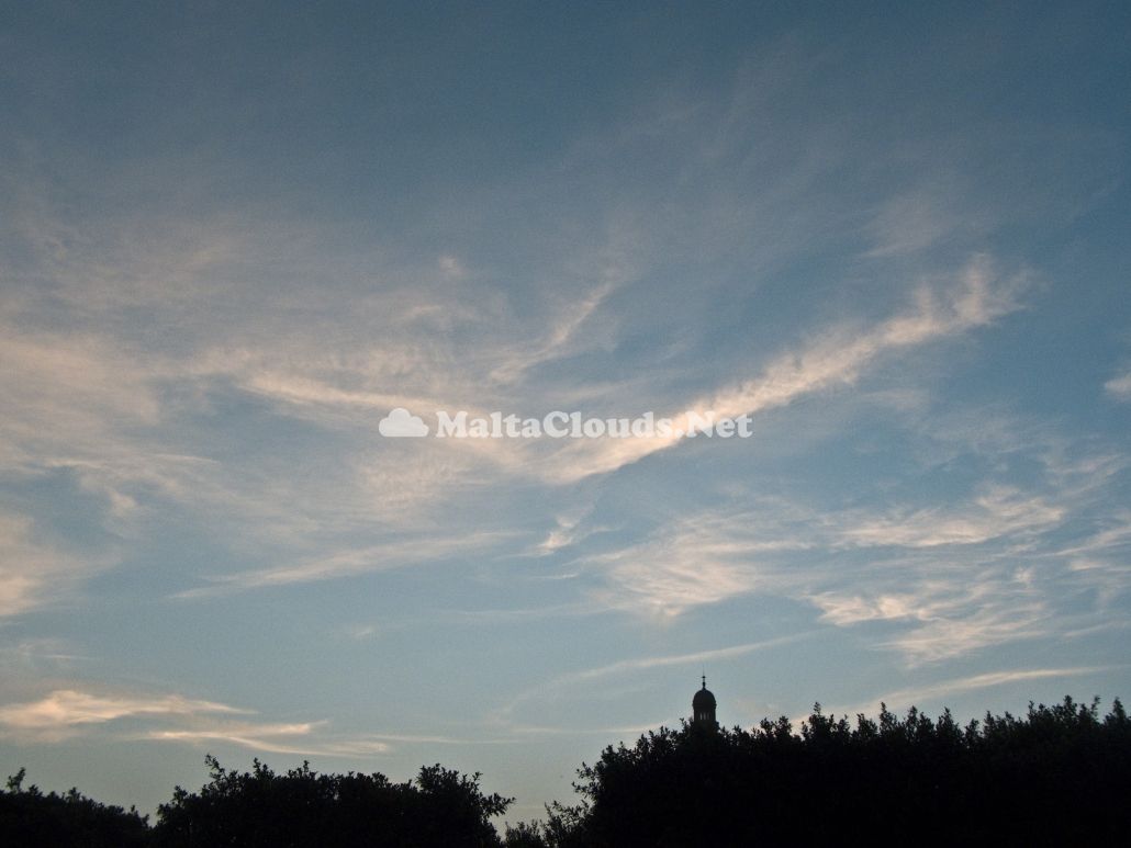 Interlaced high-level clouds at sunset. Lots of moisture was present at upper levels despite a strong upper high pressure over the region.