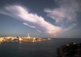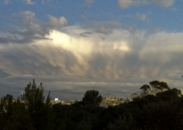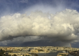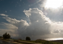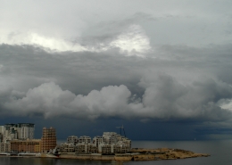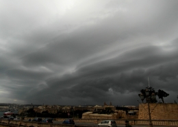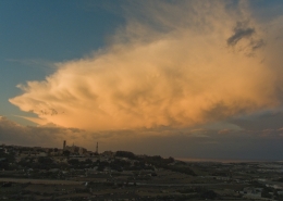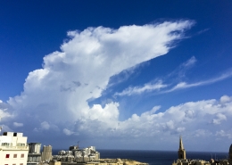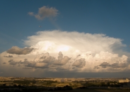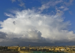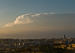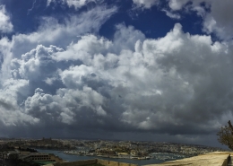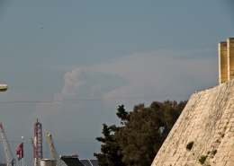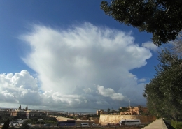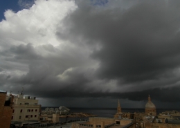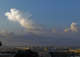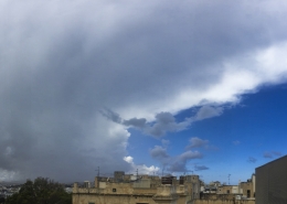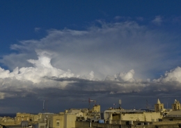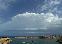 / 0 Comments / in All Levels, CumulonimbusFormation of cumulonimbus reaching a stable layer in the atmosphere hence forming an anvil as pictured. This formation was the direct result of an upper cold pool of air brought down by a cut-off low at 500mb over the Central Mediterranean. This also led to the formation of a shallow low surface pressure around the Maltese Islands. The first thumbnail also shows a cumulus congestus cloud forming over Valletta harbour due to the contrast of a relatively warm airmass underneath a cold pool of air in the upper levels.