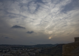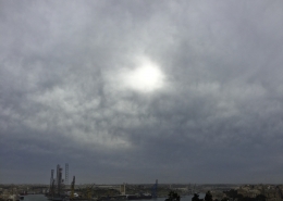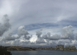 / 0 Comments / in Altrostratus, Medium LevelsWidespread mid-level altostratus clouds ahead of an approaching early Autumn thunderstorm over the Maltese Islands. Such clouds are very typical just before an early Maltese thunderstorm as clearly observed in the visible satellite image of the second thumbnail. These have a blue-grayish appearance and are normally found in the lower range of mid-level clouds and therefore obscure the sun completely. Observing such clouds does not necessarily mean that the approaching thunderstorm is weakening as altostratus does not interfere with the storm`s uptake of humid airmass but rather the result of widespread convection. The clouds underneath are cumulus mediocris. The first thumbnail shows towers of cumulus clouds (cumulus congestus) just after the thunderstorm had passed which is the result of the main instability area. The shown group of thunderstorms were moving northwards in accordance with the steering mid-level wind at an altitude of 5.5km. The cause was a line of bad weather (solid black line) to the south of Malta as per sea-level pressure chart on the fourth thumbnail.