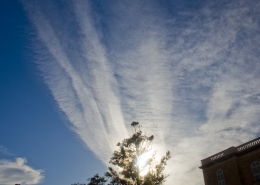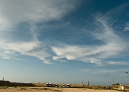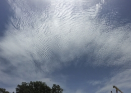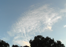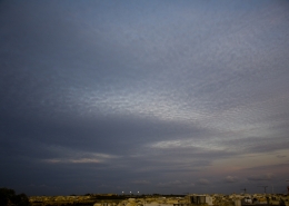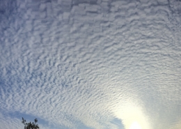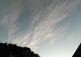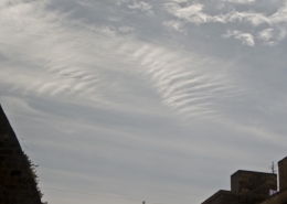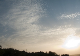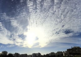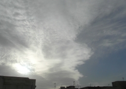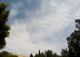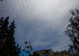 / 0 Comments / in Cirrocumulus, High LevelsFormation of cirrocumulus clouds in the afternoon due to a positive upper-level vorticity indicating high-level instability as shown in the 500mb chart on the fourth thumbnail. According to the third thumbnail weather sounding, the photographed clouds could have been altocumulus at upper-levels with the lowest height formation being 6.2km. However, due to the very small cloud elements (much less than one degree width) which was the most striking feature, I am almost certain the photographed cirriform clouds were at altitudes of above 7.5km possibly even around 8km where wind shear was present. This change in wind speed with height managed to produce very small ripples on the thin cloud cover making it of the variety ‘undulatus’ as can be clearly observed in the second thumbnail photo taken about 15 minutes later from the main photo as the cirrocumulus clouds continued to evolve. At the top of the main photo, honey-comb like features were noticed hence containing parts of the ‘lacunosus’ variety whereas parts of the cloud elements looking like small grains were barely visible. The first thumbnail shows the whole cirrocumulus clouds itself in bands aligning with strong upper-level winds blowing from a Westerly direction.
